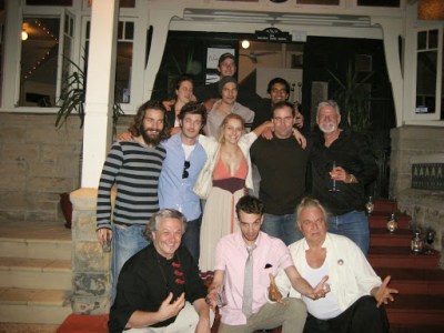 | One of the only pictures of the assembled cast (with George Miller and a couple crew members). |