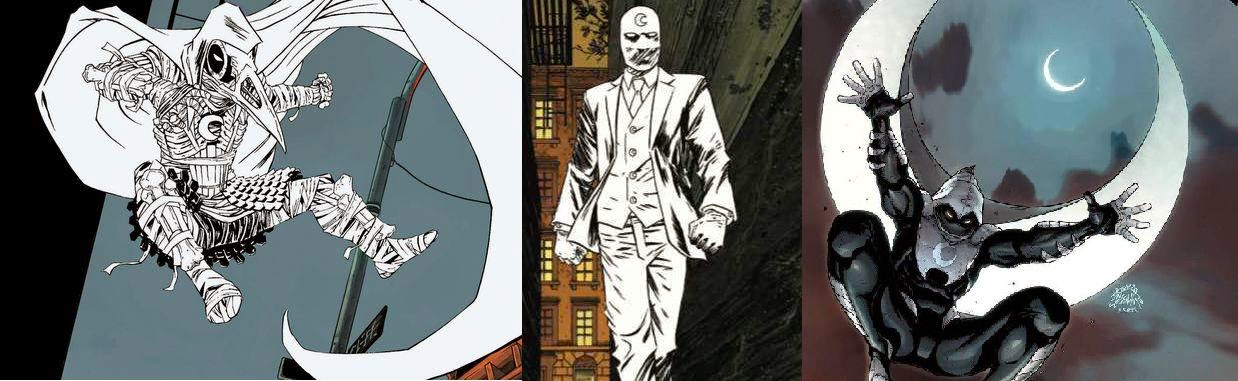 Moon Knight was once Marc Spector, a mercenary killed in a mission to some Egyptian ruins. He was resurrected under a statue of Khonshu, the deity of the moon, night travelers, and vengeance. (Only the first two apply to the actual Egyptian god Khonsu.) Spector dons a silver (typically drawn as white) costume to fight crime in Khonshu’s image as Moon Knight, but also adopts the identities of millionaire Steven Grant (as a way to spend his illegally gained mercenary money) and taxi driver Jake Lockley (to keep an eye on the streets). These lines eventually blurred into Moon Knight’s most defining characteristic: a dissociative identity disorder.